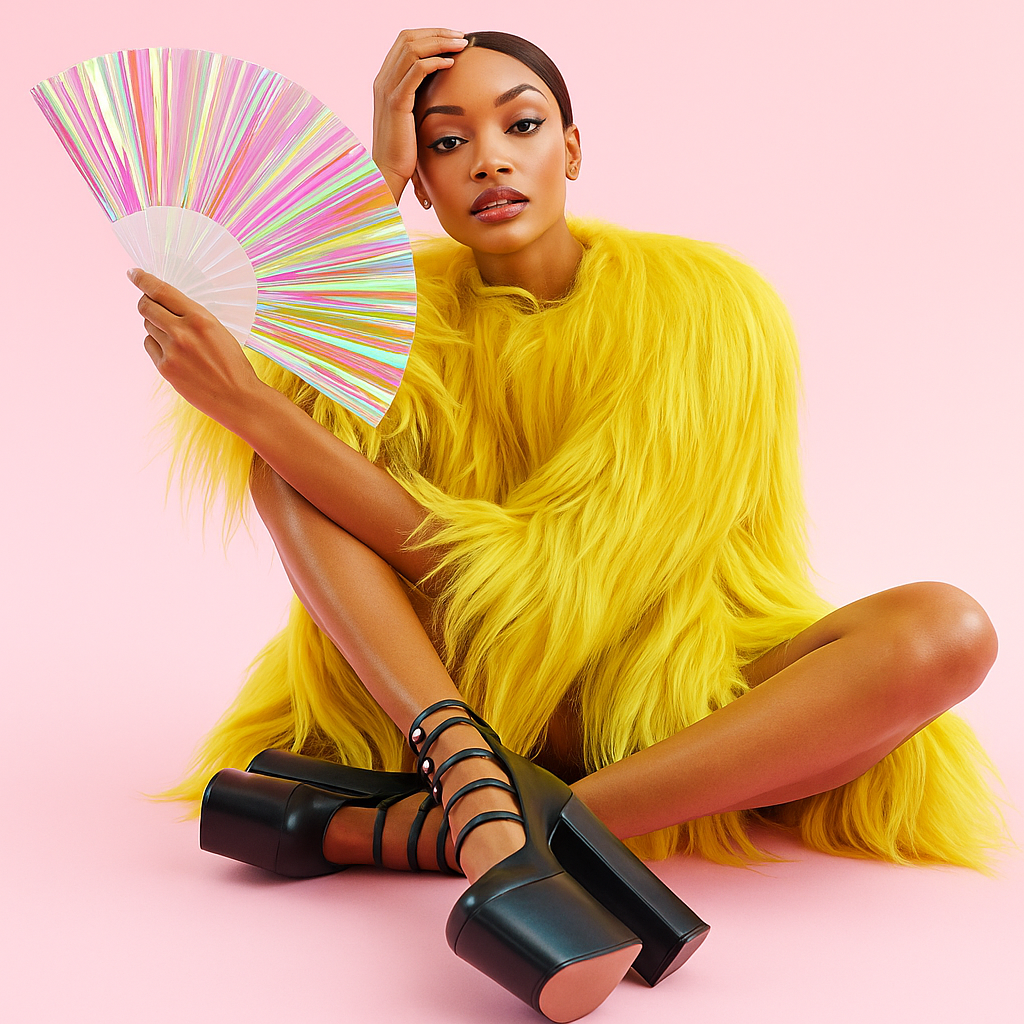 El Abanico no solo añade un toque de estilo a tu look, sino que también te ayuda a mantenerte fresco mientras disfrutas de la música y el ambiente. Su diseño iridiscente y holográfico te permite disfrutar de un efecto visual único que resalta en la multitud sin ser excesivamente llamativo.